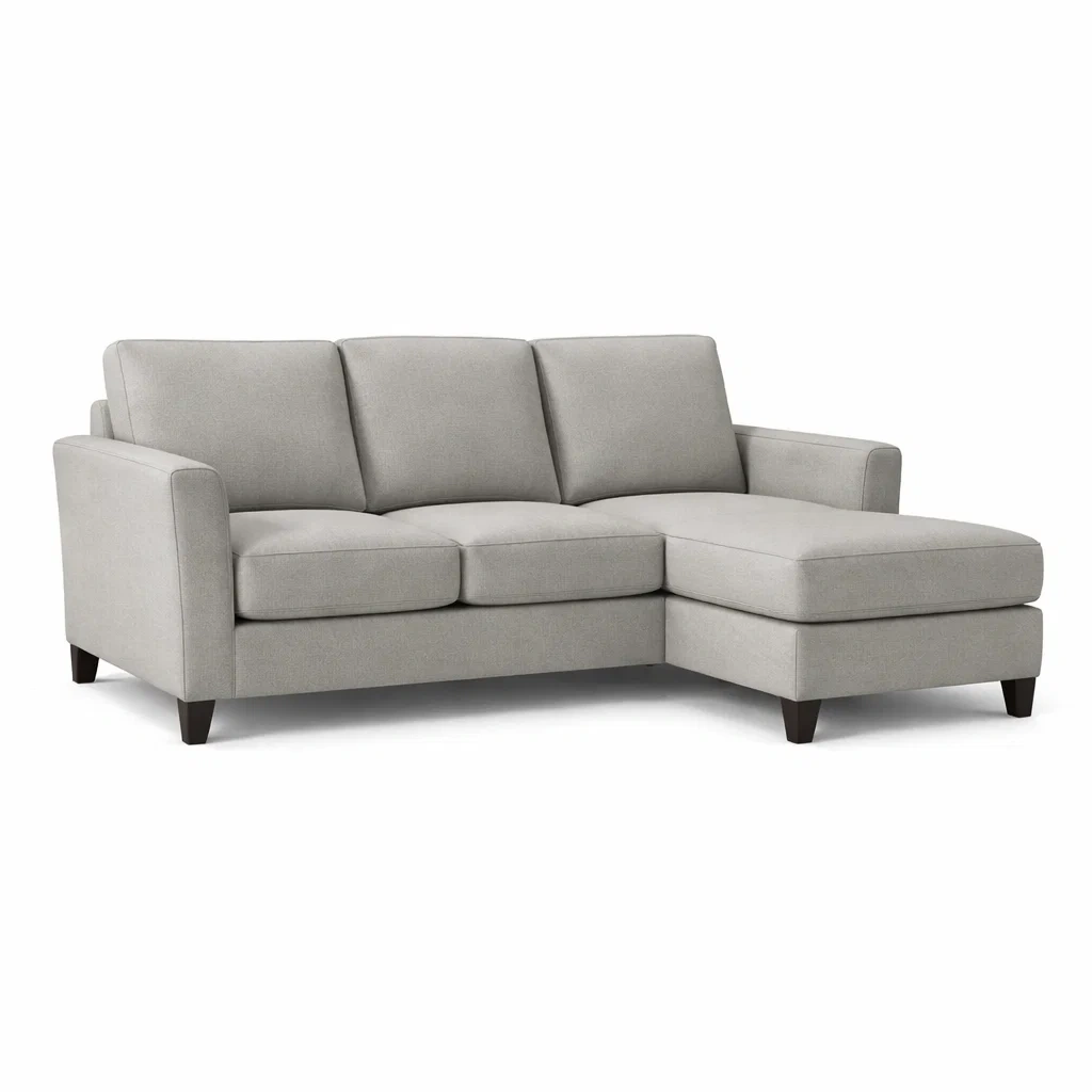Canapé d angle en tissu polyester gris avec pieds en bois